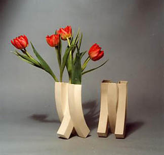 ist das Segment einer großen gedachten Kreisform. Die leicht geschwungenen Teile sind zu seriellen Objekten komponiert,es entstehen Dreier-, Vierer-, Fünfer- bis hin zu Achter-gruppen. Gleiches wird mit Gleichem vervielfältigt. Die spezielle Montage